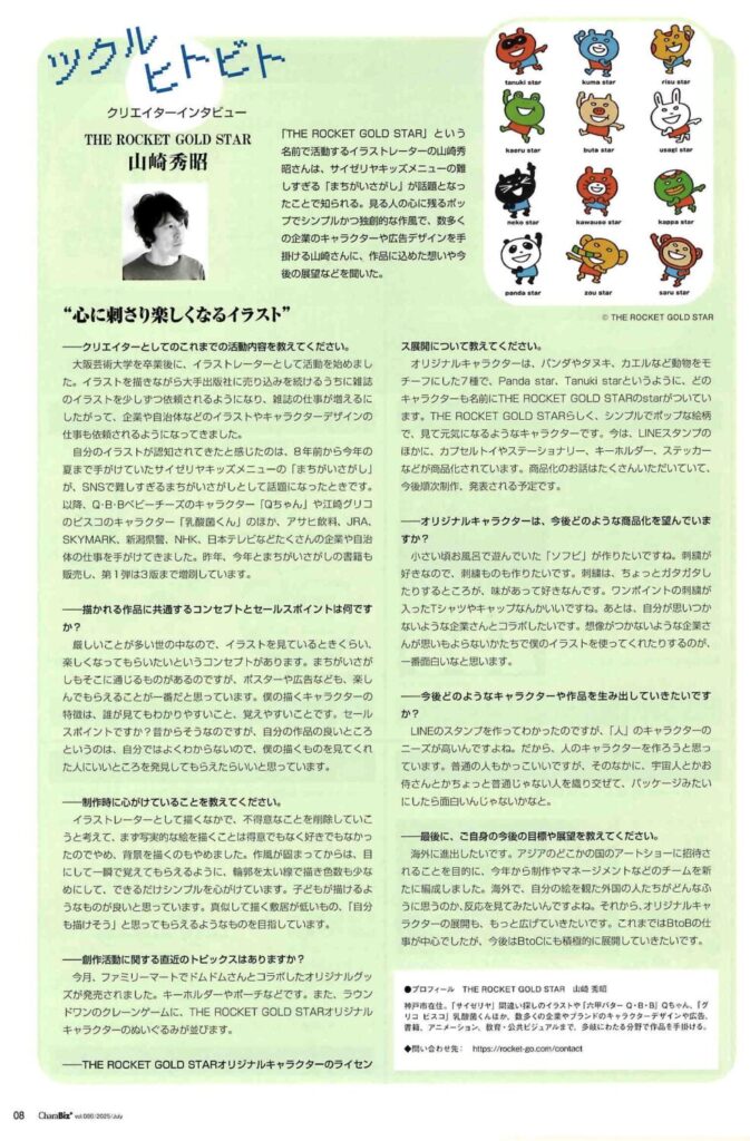 CharaBiz+ vol.86のインタビュー記事にて、イラスト制作で大切にしていることや今後の展望について掲載いただきました。ぜひご覧ください。