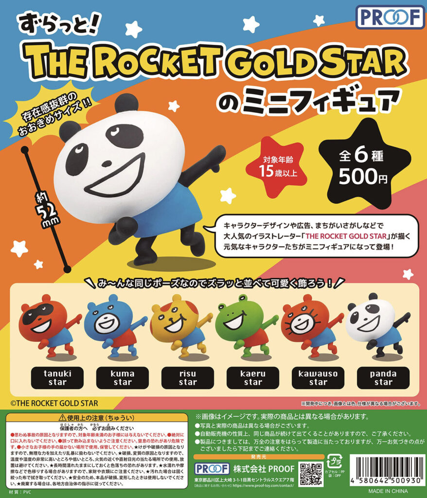 ミニフィギュアTHE ROCKET GOLD STARのオリジナルキャラクターが、カプセルトイのミニフィギュアとして商品化された。愛らしいキャラクターたちが立体化されたミニフィギュアは、コレクション性の高さと可愛らしさで多くのファンに支持された。