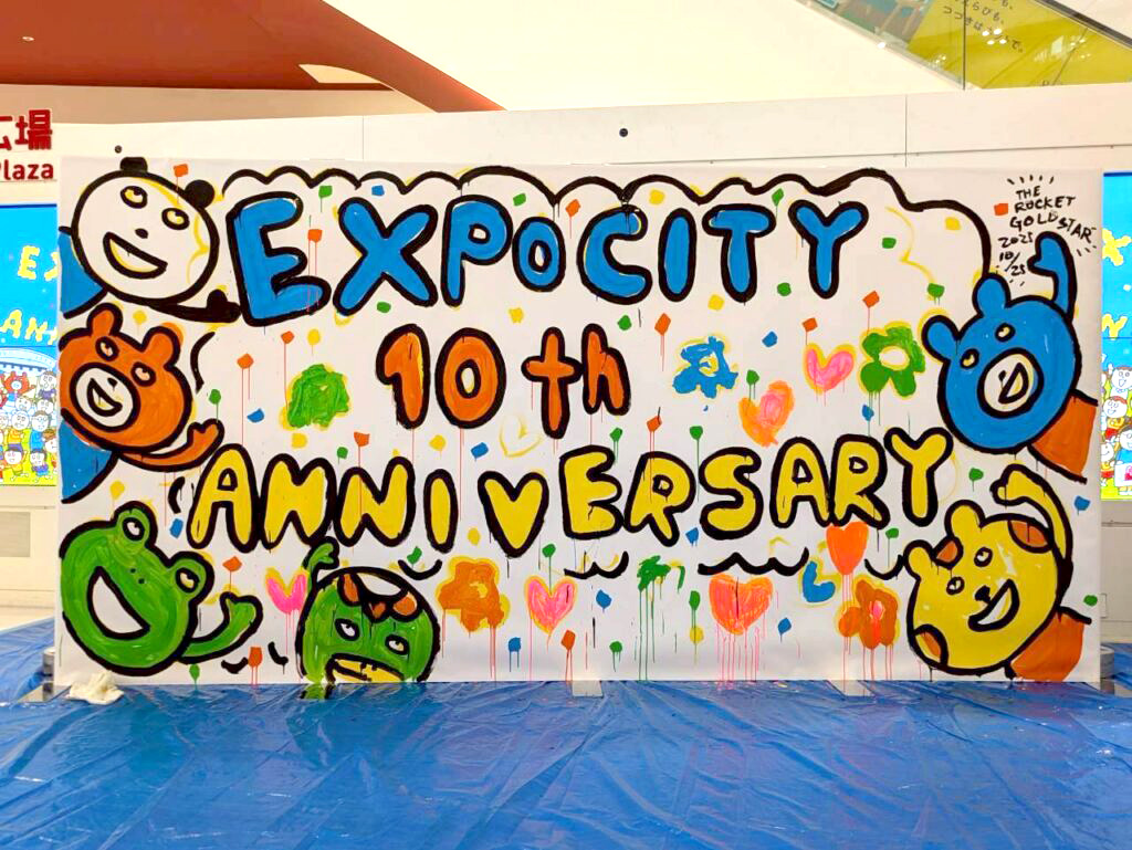 スペシャルイベントとして、ライブペイントを行い、来場した子ども達と一緒にペインティングを行い10周年を盛り上げるイベントとなった。