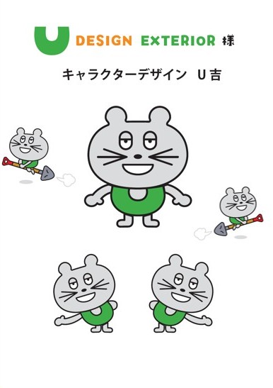家屋の外構・お庭・エクステリアの設計、施工を営まれているオーナーが好きな動物やポーズのご要望を再現しオリジナルキャラクターU吉を制作。