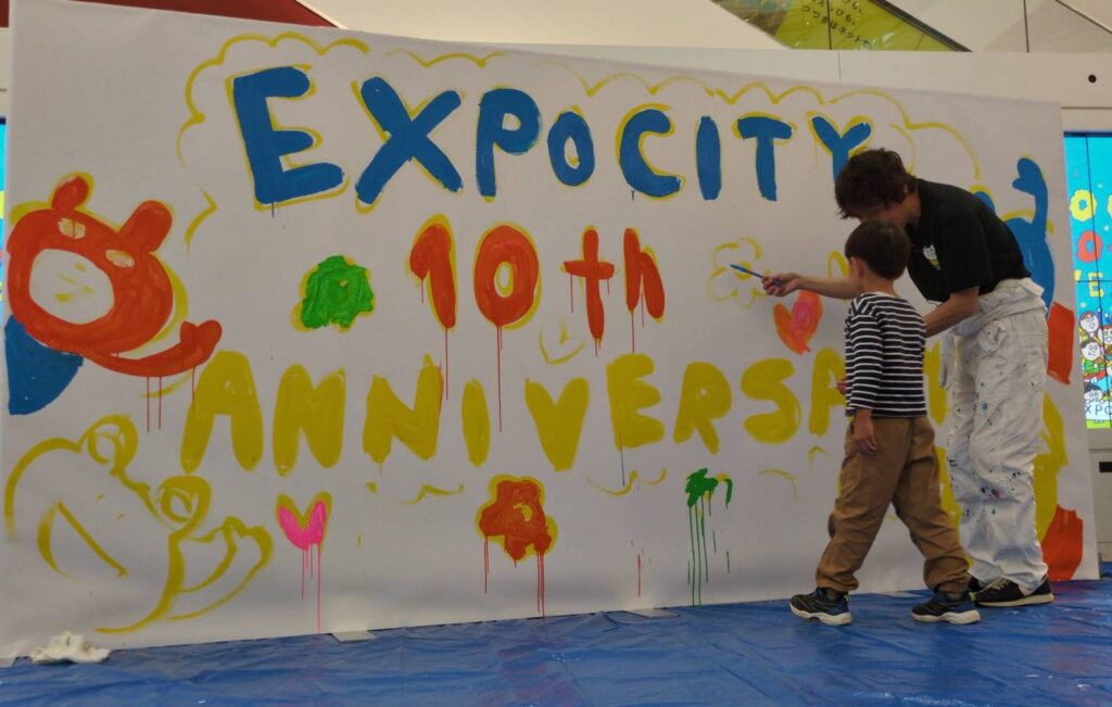 スペシャルイベントとして、ライブペイントを行い、来場した子ども達と一緒にペインティングを行い10周年を盛り上げるイベントとなった。